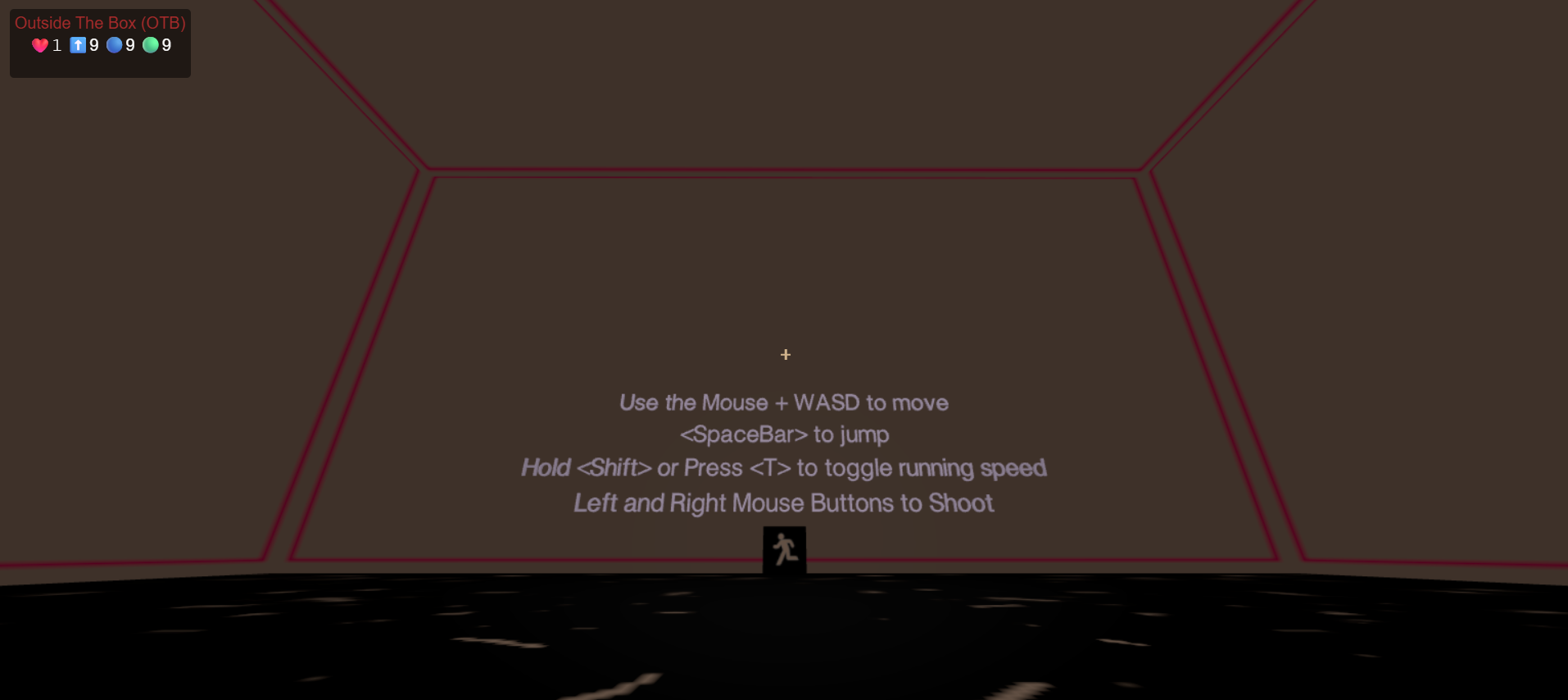 Use <Mouse>, <W> <A> <S> <D>, <Space>, <Shift>, and <Mouse Buttons> to Move, Jump, Run and Shoot