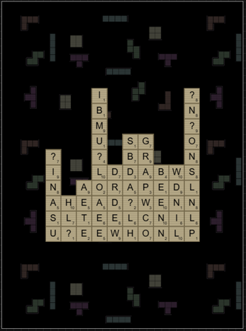Boggle Tetris: Form 4-letter words shaped like Tetris blocks.